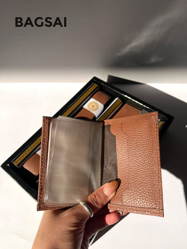 ست کیف پول و کمربند جاکارتی چرم مردانه اقتصادی