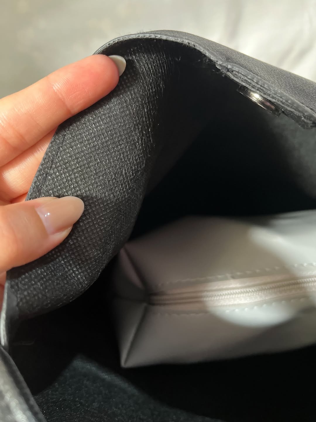 • داخلش یک کیف لوازم ارایشی طوسی رنگ و با کیفیت داره 🤌🏻